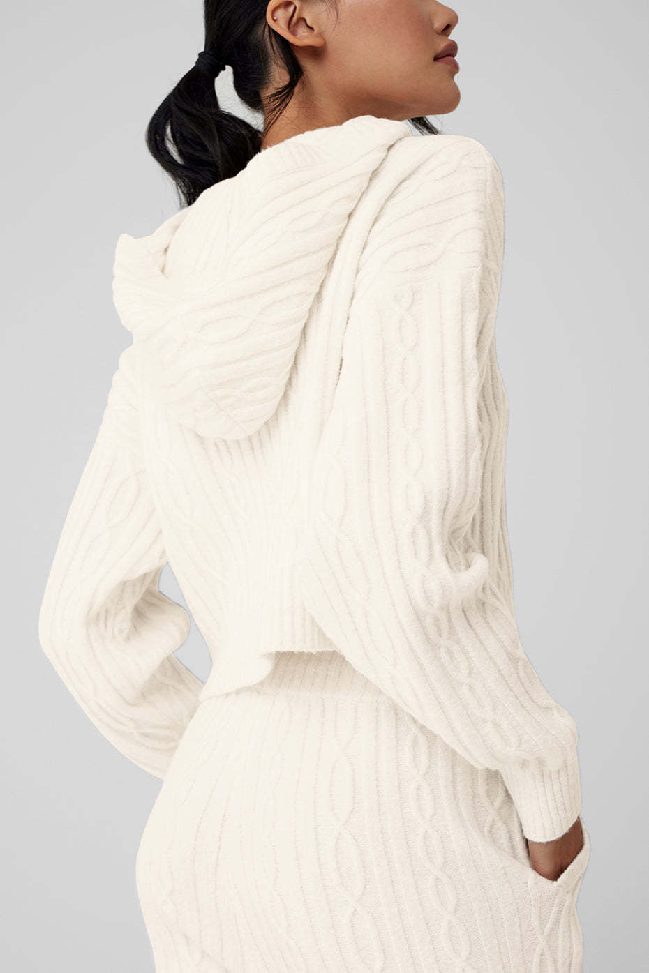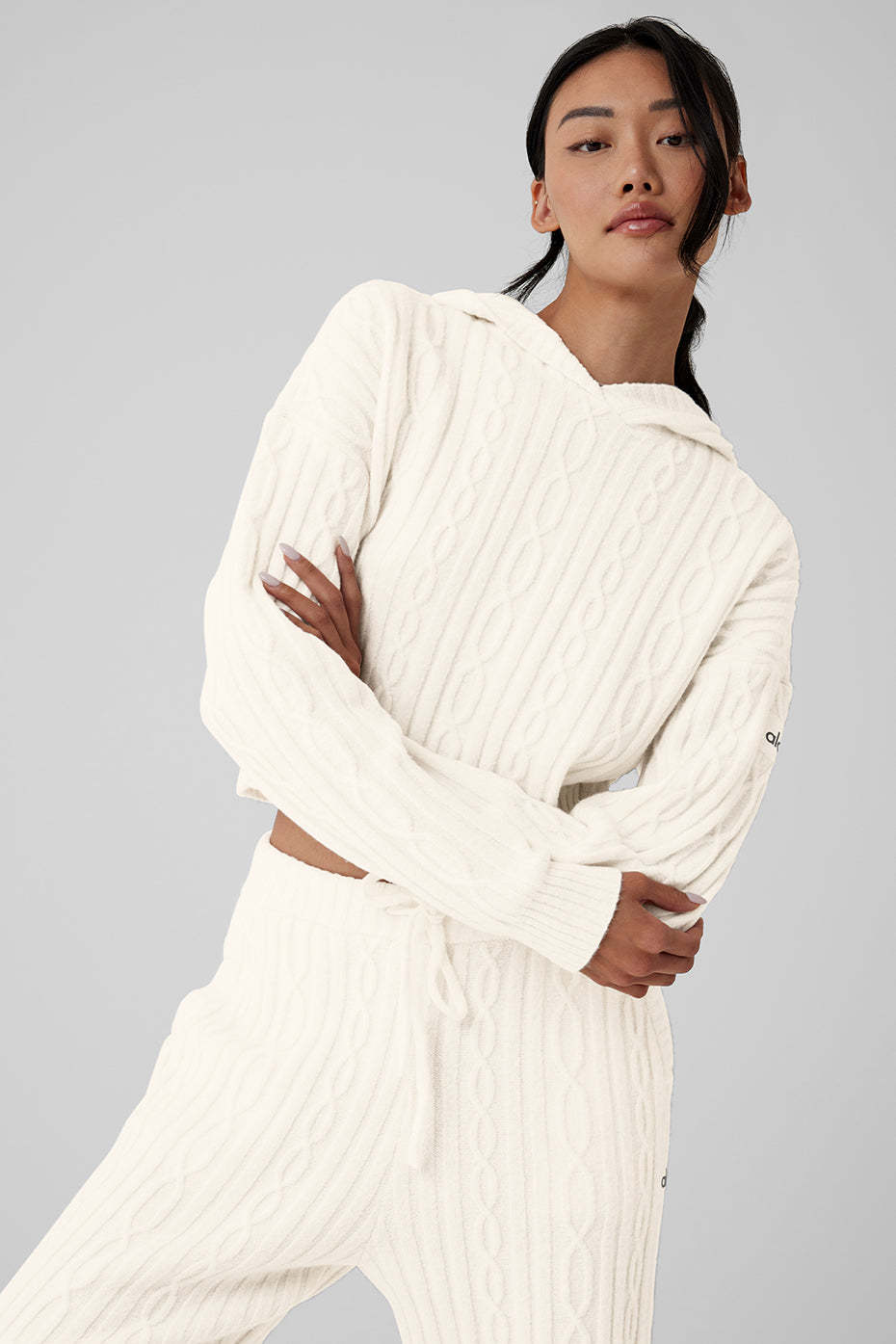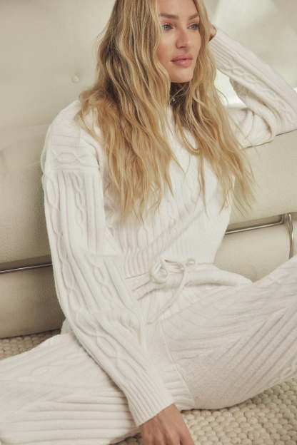 Perfect your cozy vibe in the Winter Bliss Hoodie. Designed with a chunky cable-knit and a next-level-soft, almost fuzzy feel, this closet staple has a relaxed fit with a slightly cropped hem and slits at the sides. Pair it with your favorite leggings, trousers, or〞better yet〞the matching Winter Bliss Pants.