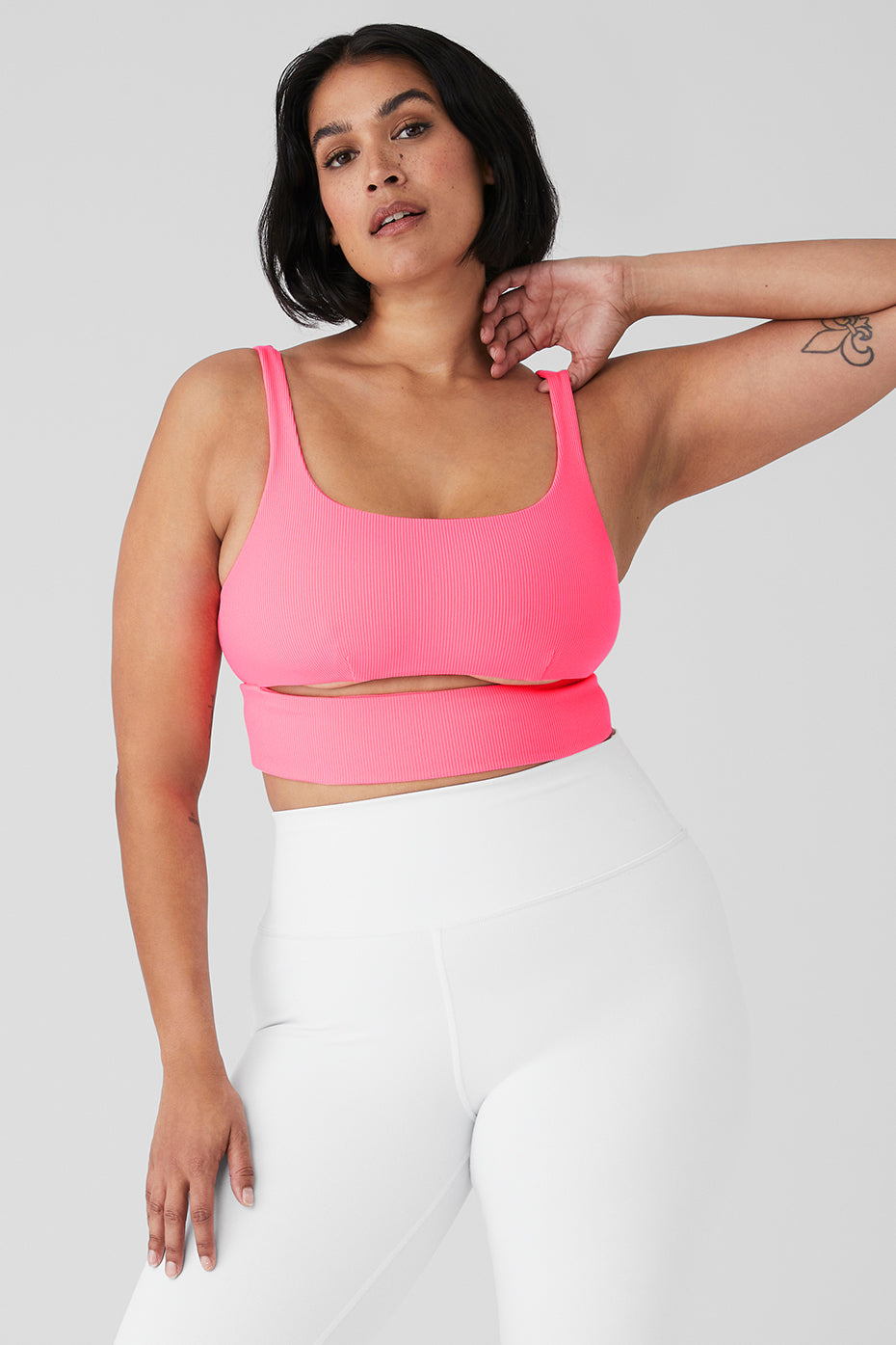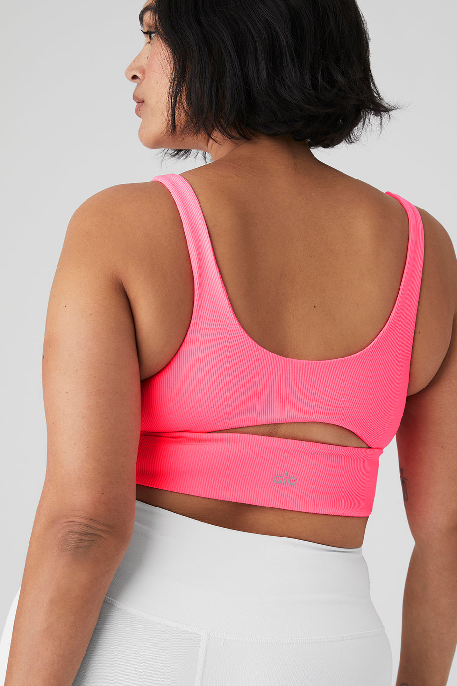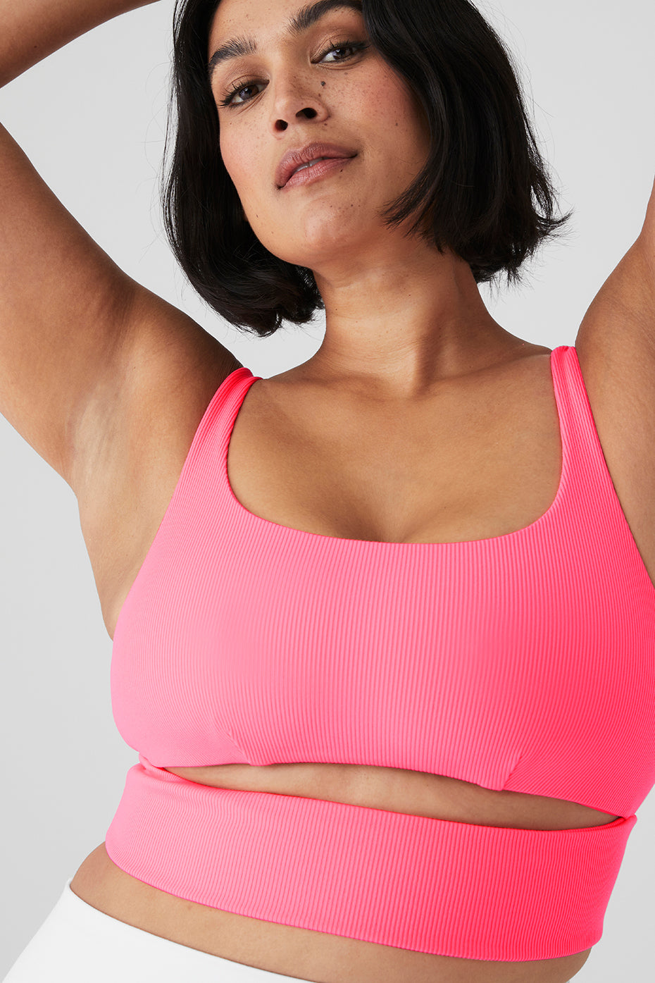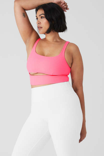 Breathe easy in the soft, comfy Slit Bra. It has a ribbed texture, scoop neck and cutouts at front and back for necessary ventilation. Wear it from studio to street with your favorite high-waist leggings.
